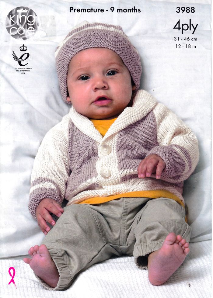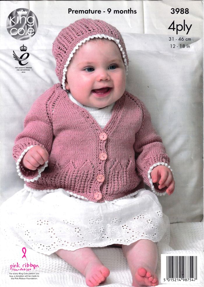 Knitting Pattern Matinee Coat, Cardigan & Hats 4 Ply 12-18″ Premature to 9 months.