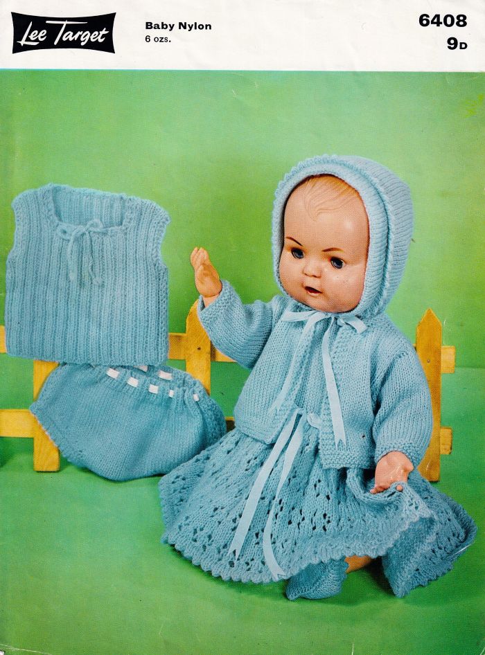 Doll Knitting Pattern Dress, Vest, Bonnet, Jacket, Pants & Shoes 16″