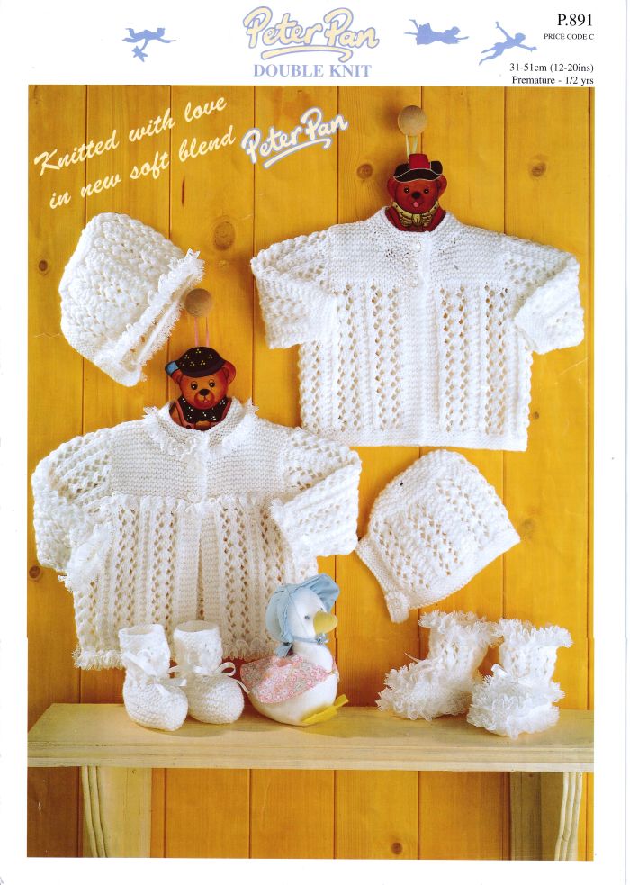 Knitting Pattern for Matinee Coats Bonnet & Bootees in DK for 12-20″ or Premature to 2 years.