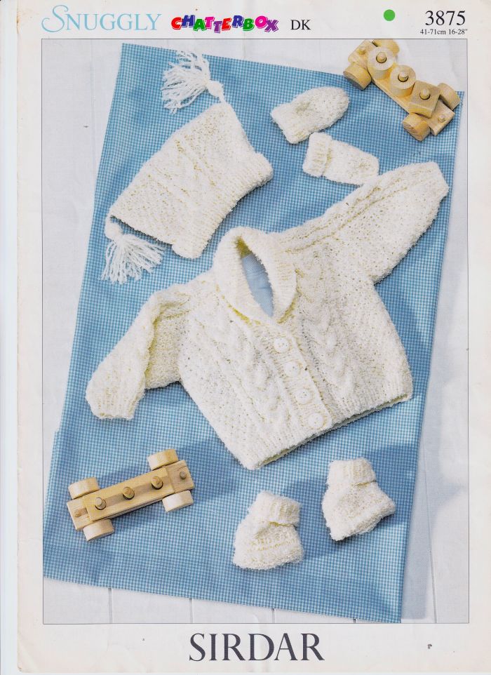 Knitting Pattern Jacket Hat Bootees & Mittens DK 16-28″.