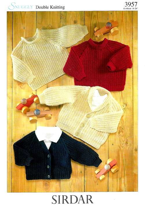 Knitting Pattern for Cardigan & Sweaters in DK for 16-26″ or 0-6 years.