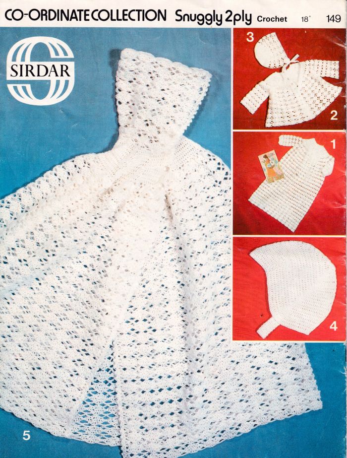 Crochet Pattern Booklet Christening Dress, Matinee Coat, Bonnet, Cape, Helmet & Shawl 2 Ply 18″